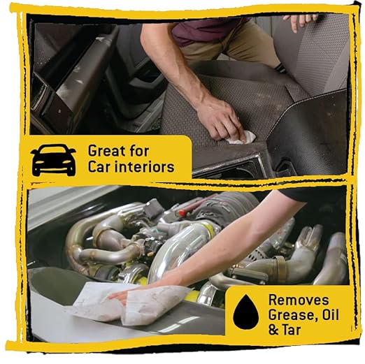 - Removes heavy stains others won't including: grease, tar, ink, paint, permanent marker, wax, scuffs, lip stick, nail polish, food and drinks, pet stains and more