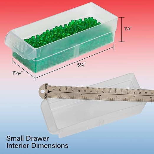 - HEAVY DUTY CABINET WITH 64 DRAWERS: The 64-drawer small storage cabinet is made in the U.S.A. from rugged, high-impact plastic and measures 20" W x 6" D x 16" H; Organizer drawer external dimensions - 6" x 2-1/4" x 1-5/8"