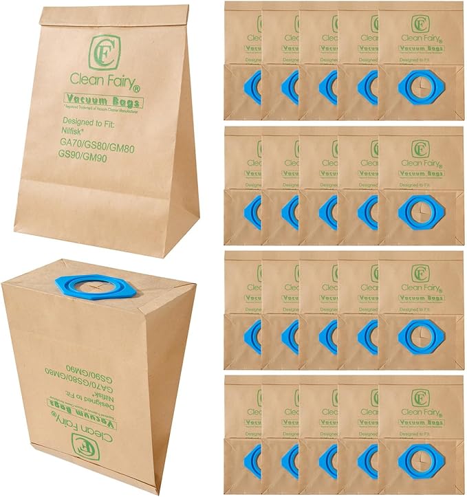 CF Clean Fairy Vacuum Cleaner Dust Bags Compatible With Nilfisk TELLUS GM80 GM90 GS80 GS90 GA70 Replacement for part# 82095000 (Pack of 20)
