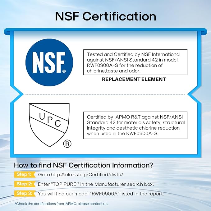- Certified Reliability: The EXCELPURE replacement for Maytag UKF8001 refrigerator water filter, holds certifications from leading authorities like NSF/ANSI 42, European Food Grade Regulations EC-1935/2016, ROHS, REACH, BPA-Free, TUV, and Australian Water Mark, ensuring top-notch quality.
