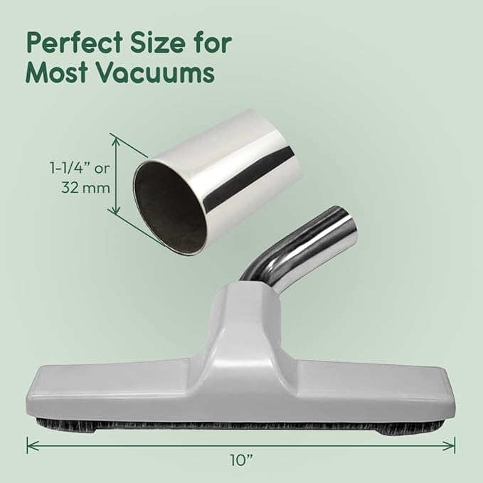 Upgraded Vacuum Floor Brush for Eureka & Universal Vacuum Cleaners with 1 ¼ inch (1.25'') (32mm) Inner Diameter with Horse Hair Soft Bristles 10” Wide (White - Metal)