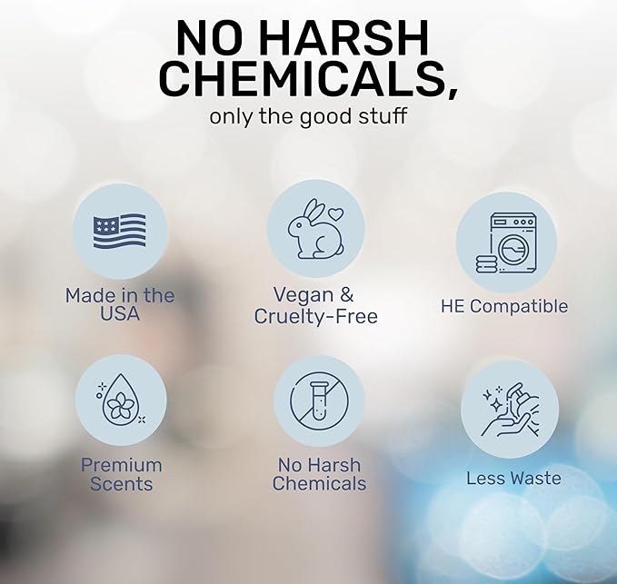 - YOUR CLOTHES WILL LOVE IT - We designed this concentrated blend of gentle washing detergents and natural fragrances to soften and reduce wrinkles and eliminate odors, stains, and dirt. Our high efficiency laundry detergent is ideal for everyday laundry, including cottons, linens, blends, and durable synthetics. It's also safe for whites and all colors, and you can use it in hot, cold, hard, or soft water.
