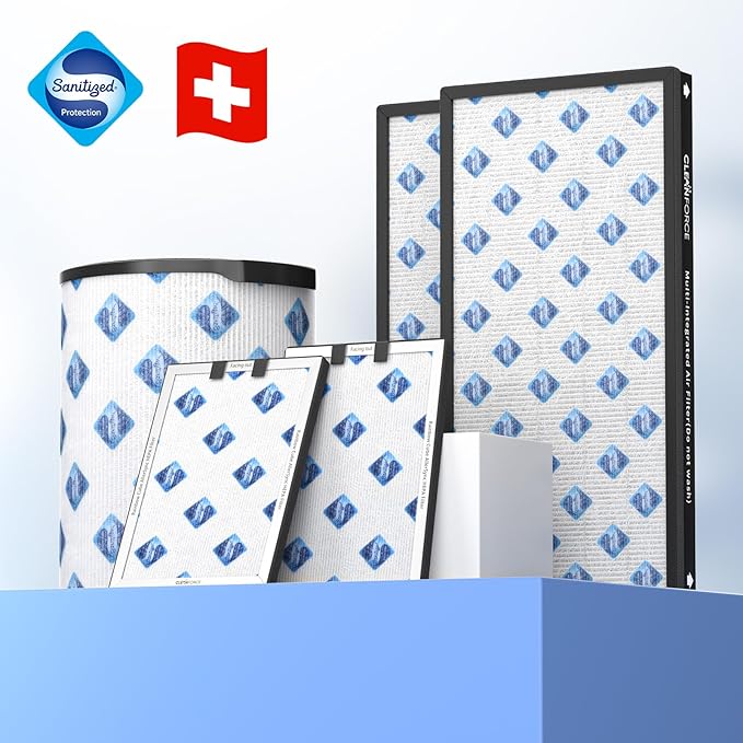 Genuine CleanForce Multi-Integrated H13 HEPA Replacement Air Filter for MEGA1000 Air Purifier, 2 PCS in Pack, filters Dust, Somke, Lint, Pet Hair Dander, Odors, etc.