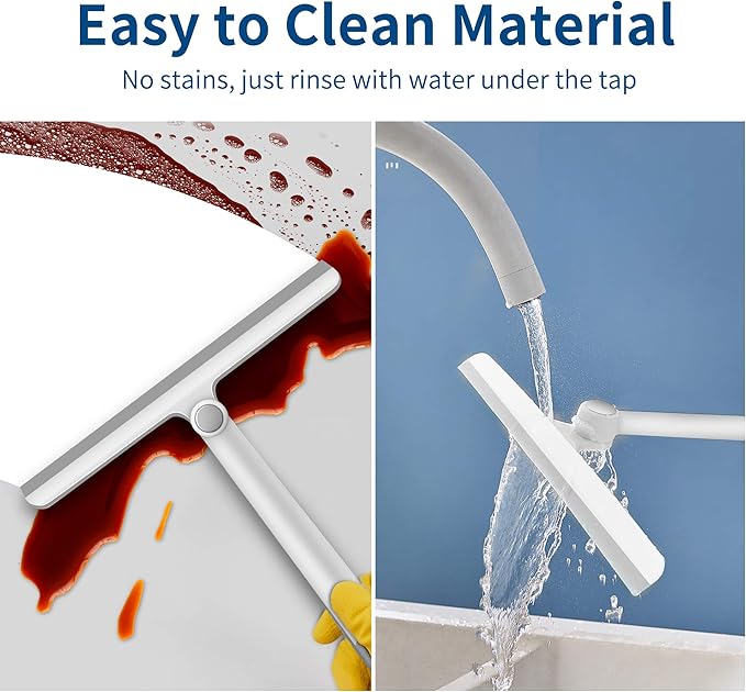- STREAK-FREE SILICONE BLADE – Experience professional-level clarity with our precision-cut silicone squeegee blade. Unlike stiff rubber that chatters, this soft yet durable material glides smoothly over wet surfaces, ensuring a streak-free shine on bathroom mirrors, tiles, and glass partitions without any squeaking noise.