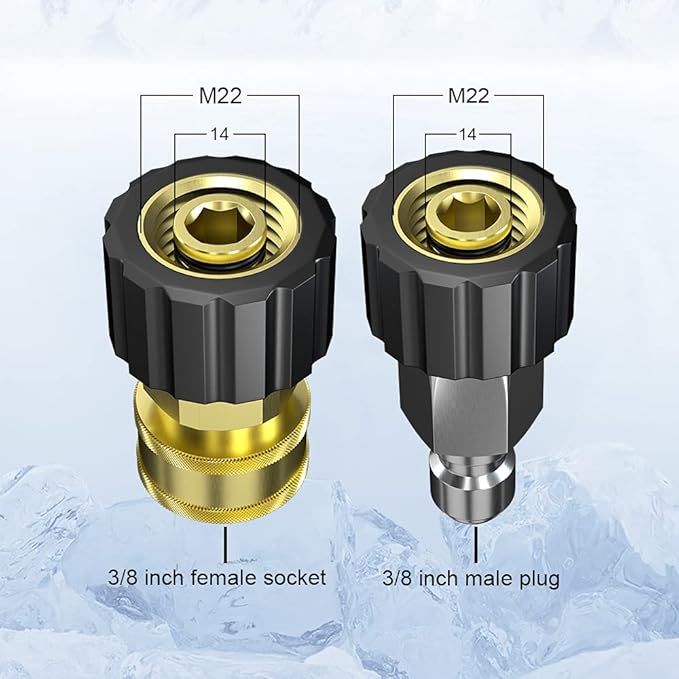 - 【7x24 Support】Package Includes - 1 * steel wire braided 50 feet pressure washing hose, 1 * M22 14mm female to 3/8 inch male plug , 1* M22 14mm female to 3/8 inch female disconnect coupler. If you have any issues, please feel free to message POHIR at any time, we're online 7x24 ready for support.