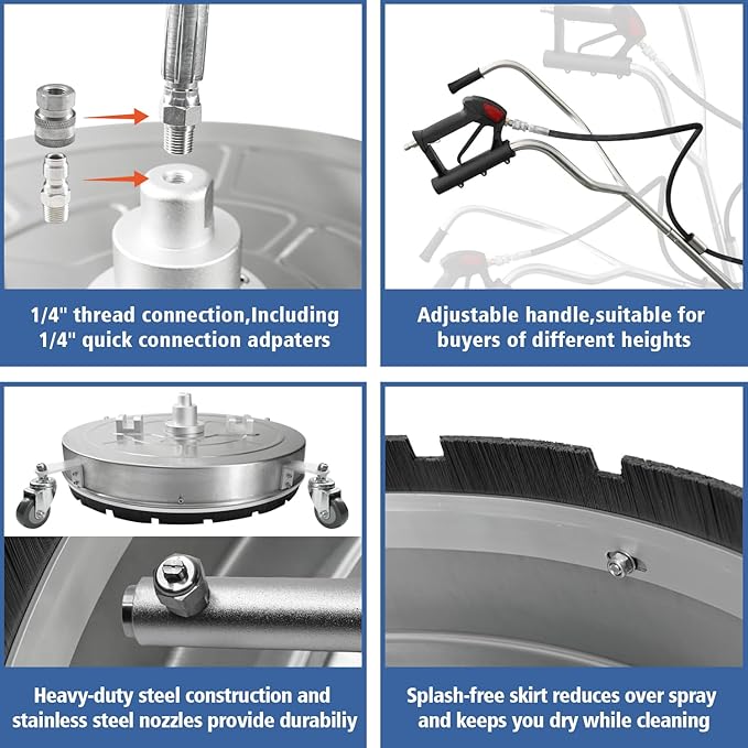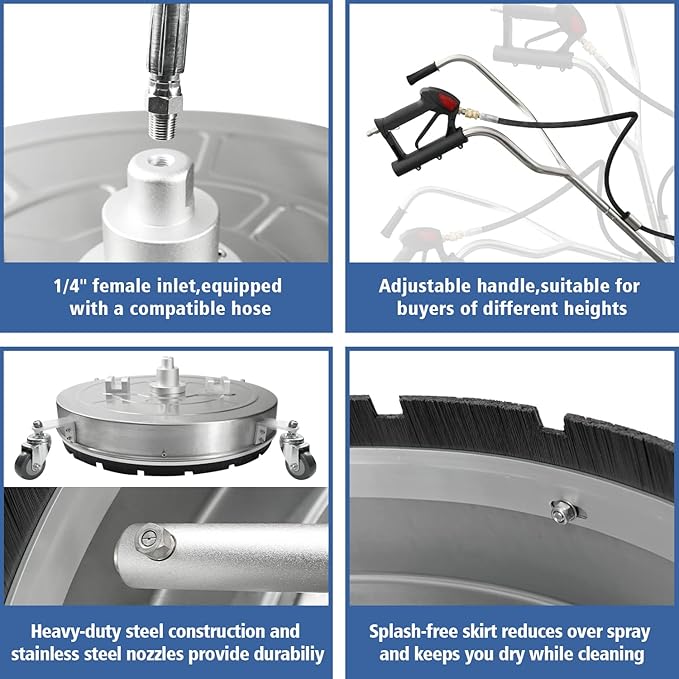 - GREAT EFFICIENCY - Our surface cleaner possesses two high-pressure jets that rotate rapidly to disintegrate dirt and grime. With 12 times more cleaning coverage compared to a standard nozzle, it enables you to finish your pressure washing projects in a significantly reduced time.