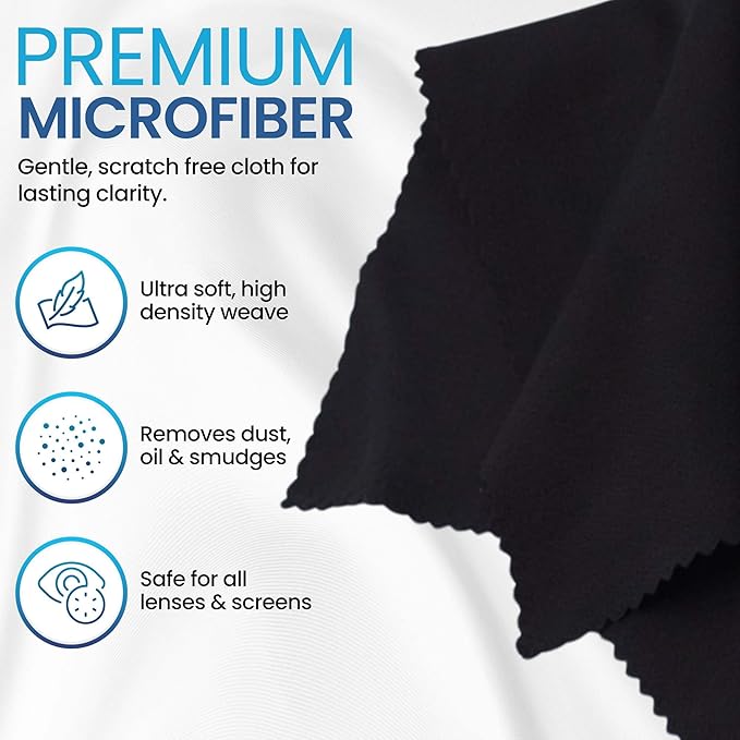 - 2 MICROFIBER CLOTHS INCLUDED: We have included our premium cleaning microfiber cloths made of high-density microfiber. The unique weave of our microfiber cloth traps dirt, dust, oil and fingerprints, keeping your eyeglasses as clean as possible without scratches.
