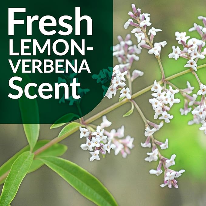 - Leaves a fresh lemon-verbena scent