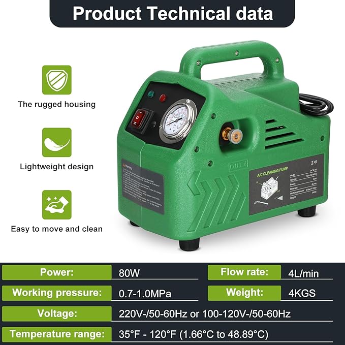 - Easy to use and carry:Port A blaster HVAC coil cleaning pump is designed according to the feature of conditioner and refrigerant equipment.The inner pump adopts with DC permanent magnet motor. this product has the good performance of light weight,high pressure, reliable and self-priming.The pump has automatic cut-off with the pressure control and all accessories place in one bag,easy to carry.Lightweight for easy carrying.
