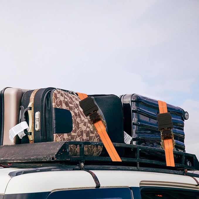 - Quick-Release Latch for Fast Fastening: The 20ft flexible webbing adapts and locks into place instantly, and when you're ready to unload, you can pull the black spring-loaded handles for smooth, speedy release. Our ratchet straps are a great choice for moving cargo, appliances, lawn equipment, motorcycle