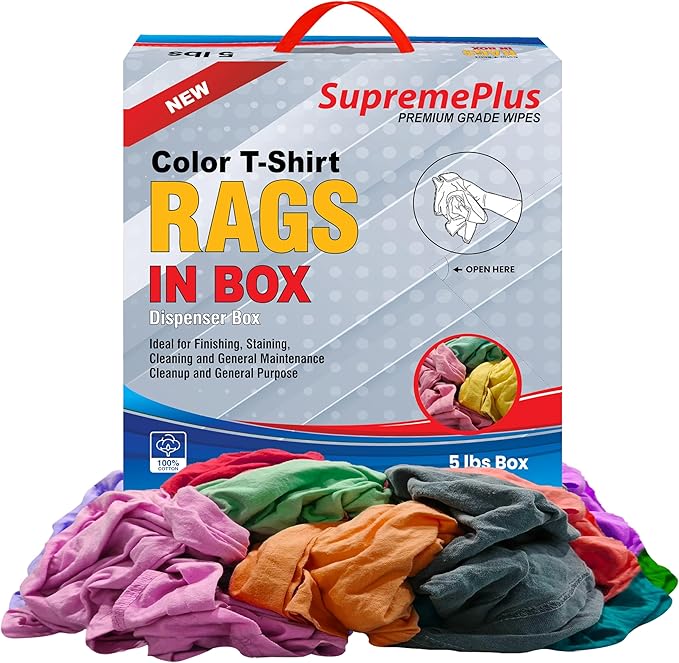 Premium Color Knit Cleaning Cloths (5 lbs. Compressed Box) – Shop Rags Bulk for Workshops, Mechanics, Painters, and Home Use, Multipurpose Cotton T-Shirt Rags
