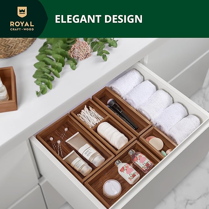 ROYAL CRAFT WOOD Premium Carbonized Bamboo Decorative Boxes - Drawer Organizer Set (5-Piece) – Wood Storage Boxes for Kitchen, Bathroom, Office & Makeup