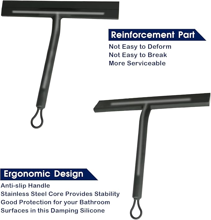 - 【Ergonomic & Comfortable Grip】Featuring an ergonomic handle wiper design, our squeegee for shower glass and car squeegee provides a comfortable, anti-slip grip, allowing you to clean with minimal effort. The durable silicone blade ensures efficient cleaning of tiles, glass, and other surfaces, even in hard-to-reach areas.