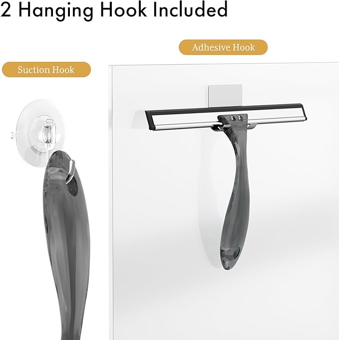 - Dual Hanging Options for Convenience: Enjoy the flexibility of two hanging solutions with the AmazerBath bathroom squeegee. Choose between the convenient suction cup hook for easy, removable placement or the reliable adhesive hook for a more permanent and discreet mounting option. Ideal for daily use and hassle-free storage.