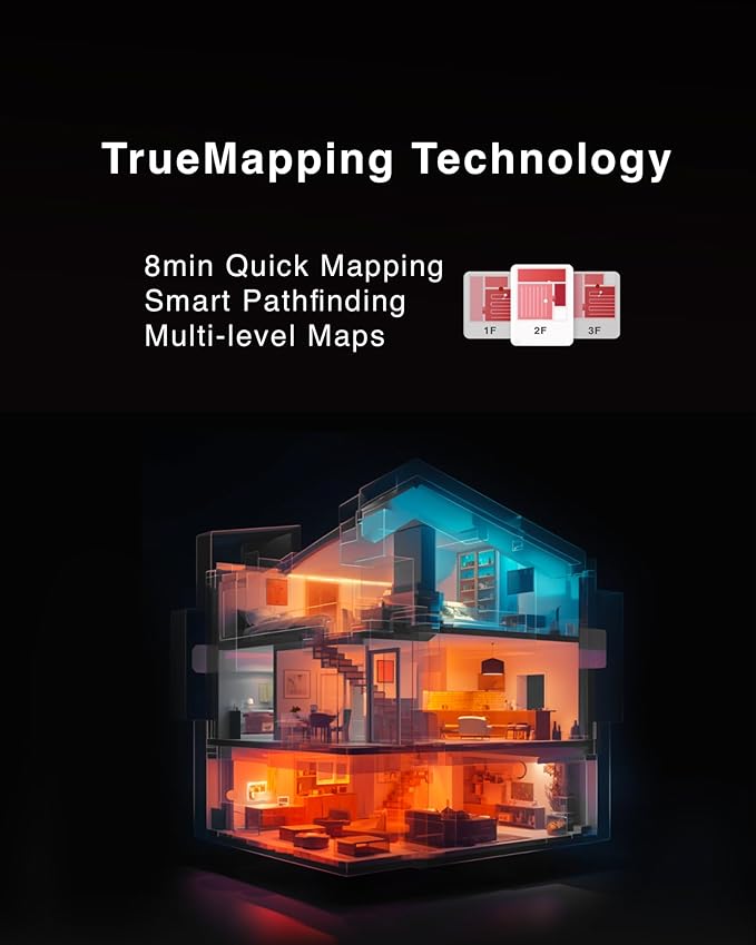 - TRUEMAPPING TECH - 8-minute fast mapping, close-range scanning accuracy can reach within 10mm, accurately positioning the room. TrueMapping intelligent path planning can perform 360-degree laser ranging scans within the range of the ranging radius, using the bow-shaped walking cleaning plan to comprehensively clean without any omissions.