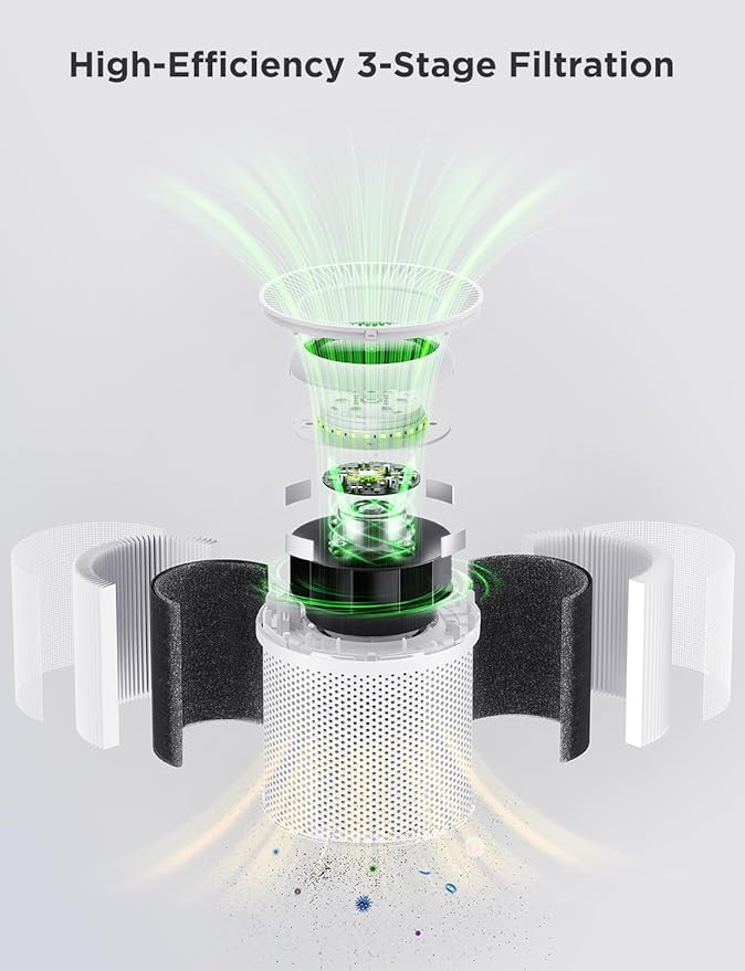 - High-Efficiency Certified Filtration: The advanced filter delivers a 99.97% efficiency in containing ultra-fine particles, independently verified for effectively transferring pollen, smoke, and pet dander. Certified by Energy Star, ETL, FCC, and CA65 for reliability and safety. Note: This air purifier is ETL certified, ensuring it meets rigorous safety standards.