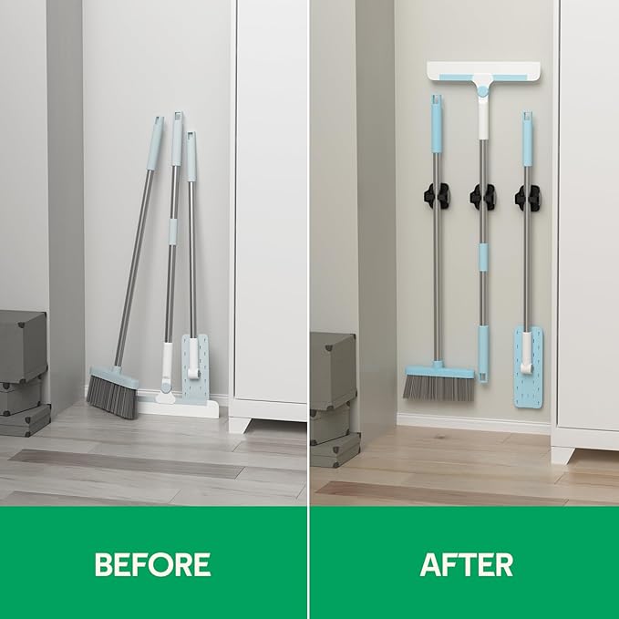 - Save Space: You can use corners, such as behind a door or in a kitchen cabinet or in the garage, with our grippers, wall-mounted brooms, mops, umbrellas, baseball bats, etc.