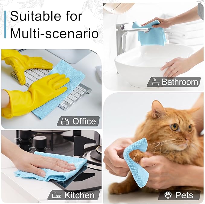 - MULTI-PURPOSE: Each microfiber towel measures 11.8 x 11.8 inches and is suitable for a variety of cleaning tasks, not only for kitchens, cars, and workshops, but also for cleaning electronics, glass, screens, and more. Versatile and a must-have for homes, bars, restaurants, bedrooms, kitchens, bathrooms and garages