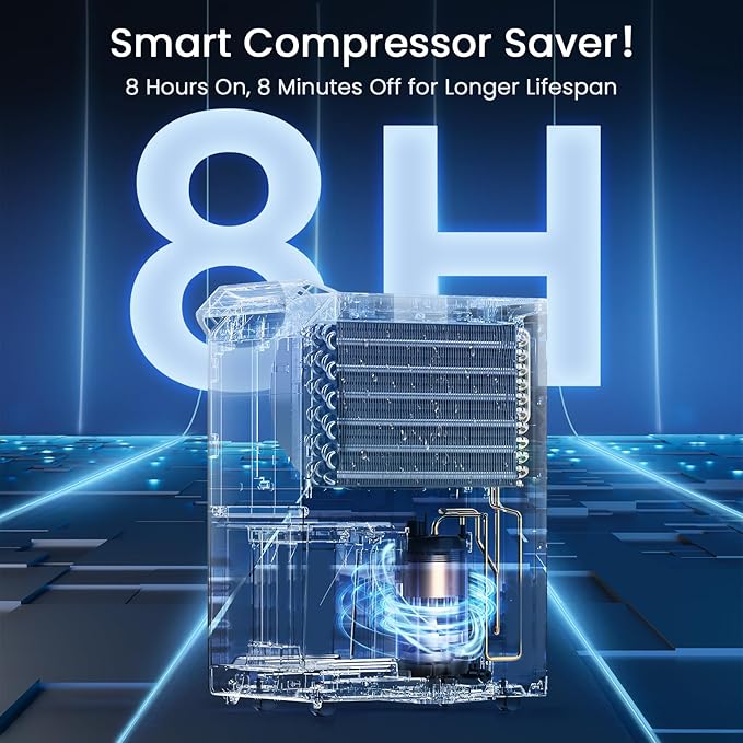 - [ Say goodbye to humidity headaches ] DryTank Pro Dehumidifier features a high-efficiency rotary compressor and a “3+2” evaporator/condenser system with pure copper tubes and hydrophilic aluminum fins. More copper means faster moisture removal, lower energy bills, and longer lifespan. Whether it’s a damp basement, steamy bathroom, stuffy garage, living room, or flood recovery—DryTank Pro keeps your home dry, healthy, and comfortable with ease