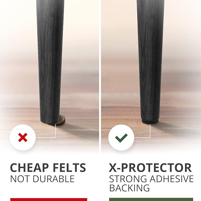 - ✌ X-PROTECTOR SUITABLE FOR ANY HOME FURNITURE – our felts wood floor protectors for furniture are perfect for any chair legs and furniture feet. STICK IT EASILY TO YOUR HOME FURNITURE!