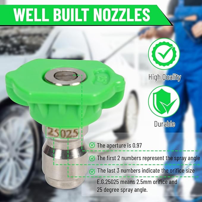 - THE EARLEAS SMART VALUE PROMISE: You receive a full 5-piece set of high-performance pressure washer nozzles (2.5 GPM) backed by our commitment to quality. We believe you shouldn't have to compromise on power or durability to get a great deal.