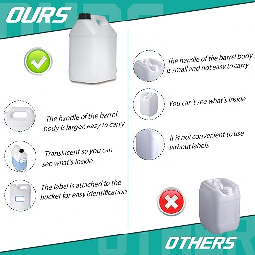 - Size Information:1 gallon containers for liquids measuring approximately 9.9*6.7*5.3 inches and equipped with a sturdy handle that comes with a lid, these jugs provide easy and comfortable transportation, even when filled to capacity, the handle is engineered to be easy to lift, reducing the risk of accidental leaks and drops while carrying, they are lightweight, strong, and pressure resistant. Transparent liquid storage makes it easier to identify the contents of the pot
