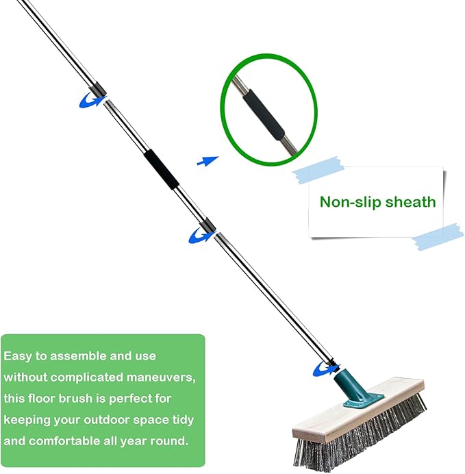 - EASY TO ASSEMBLE AND USE: This outdoor wall scrubber is easy to assemble and use without complicated maneuvers, making it ideal for keeping outdoor spaces tidy and pleasant year-round. Users can easily use this floor brush to keep outdoor spaces clean and tidy
