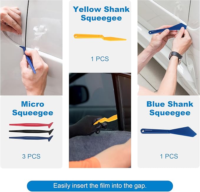 - High-Quality Cleaning Tools:Constructed from premium ABS plastic and rubber, the included cleaning tools effortlessly remove water stains, dust, and air bubbles. The specially designed contour squeegee reaches tight seams and corners, delivering a smooth, scratch-free finish during your window tinting process