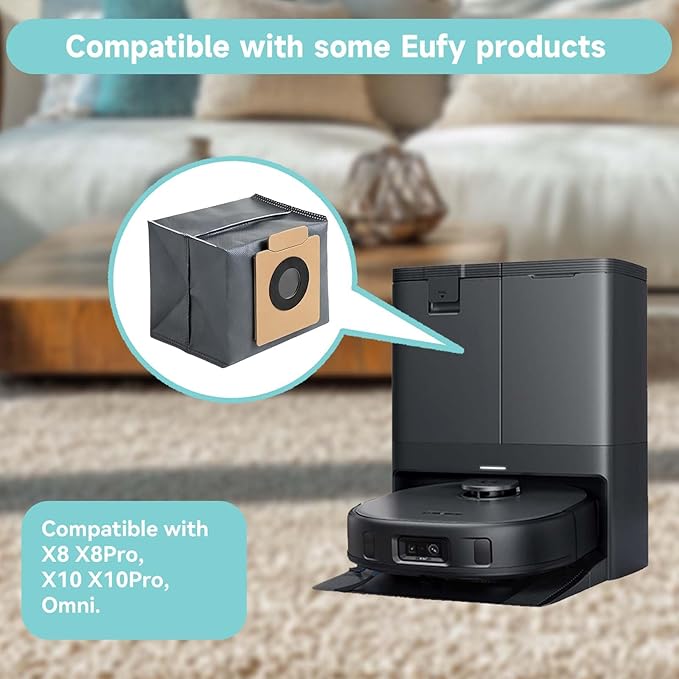 - 【Perfect Compatibility】These X10 disposable dust bags are specifically designed for the Eufy X10 Pro Omni and X8 Pro Robot Vacuum. Installation is effortless, and you won’t need to worry about any compatibility issues.