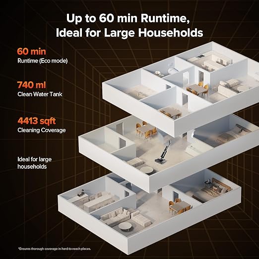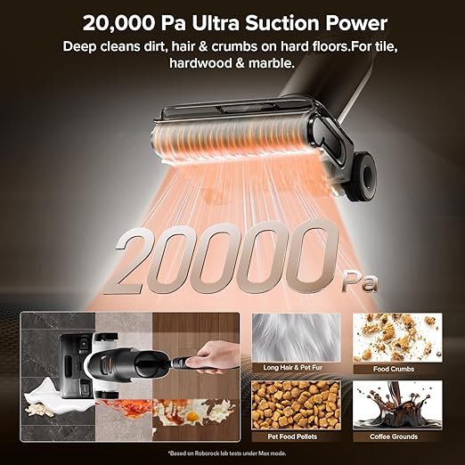 - Powerful & Fast Cleaning: 20,000Pa suction and 32 water outlets work together to eliminate stubborn stains in no time, while the intelligent detergent system automatically adjusts cleaning liquid to match dirt levels.