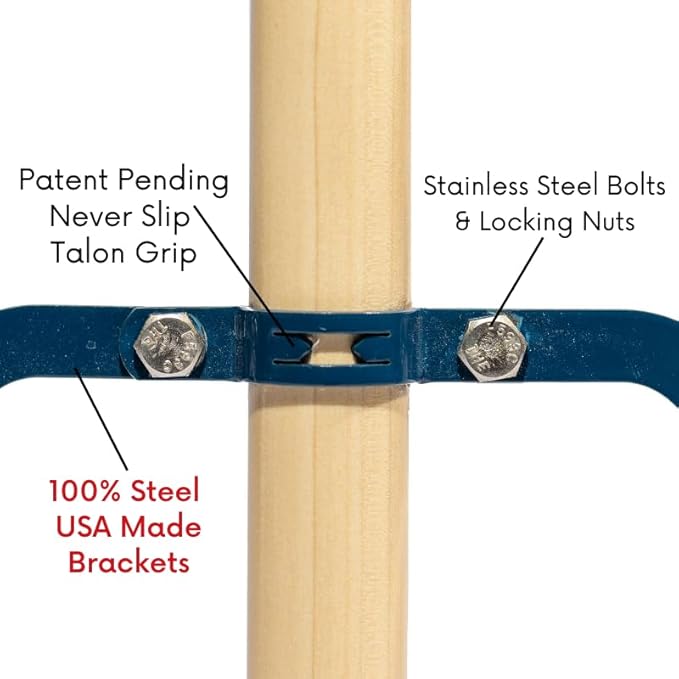 - GALVANIZED STEEL THREADED HANDLE INSERT + TALON NO-TWIST BRACKET: The handle has a galvanized steel threaded insert permanently attached to it, which threads securely into the hardwood block. The Talon patented steel bracket locks the handle in place using stainless bolts and nuts into wood furniture inserts, preventing twisting, looseness, or wobble — even under heavy sweeping force. Build with a vynafoma grip for all day sweeping