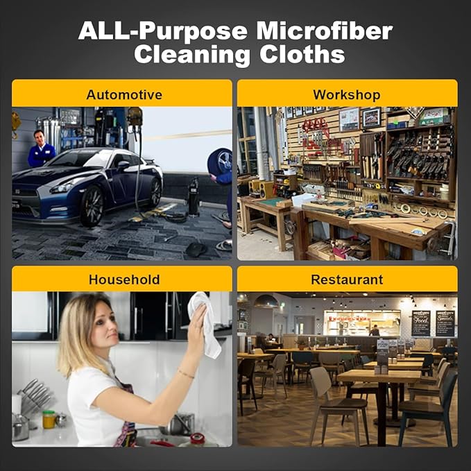 - Lint-Free & Scratch-Free: Made from premium microfiber, our shop towels are luxuriously soft to the touch and designed to prevent any scratching or lint residue. These microfiber cleaning cloths ensure that no fibers cling to surfaces, making them ideal for delicate tasks such as car detailing, machinery cleaning, surface wiping, and hand drying