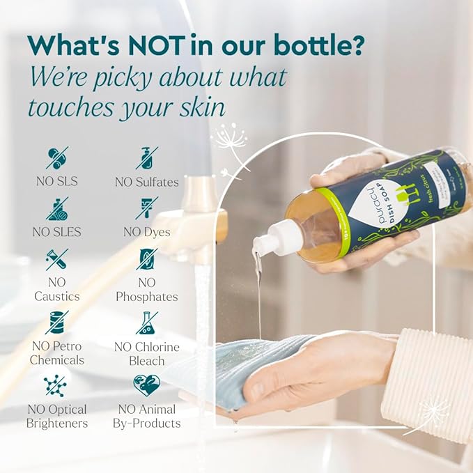 - Grease-Busting Formula - Unlock the might of this dish soap organic that effortlessly cuts through the toughest grease and grime, leaving pots, pans, glasses, and baby bottles spotless. It naturally softens skin, rinses quickly, and ensures spot-free dishes, even in hard water.