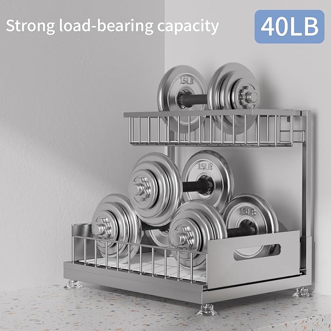Under Sink Organizer Storage 2-Tier Premium Metal Pull-Out Kitchen Cabinet Organizer with Sliding Drawer, Height Adjustable, Heavy Duty for Kitchen & Bathroom Organizers 1 Pack Grey