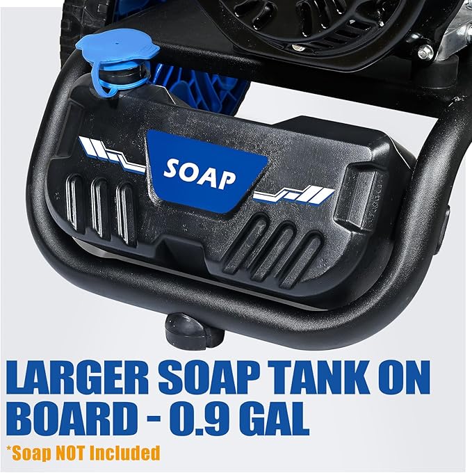 - [๐๐ฎ๐ซ๐๐๐ฅ๐ & ๐๐๐๐ข๐๐ข๐๐ง๐ญ ๐๐ฎ๐ฆ๐ฉ]: Featuring a reinforced, maintenance-free axial-cam pump, this TOOLCY pressure washer gas offers 53% longer service life compared to other models. Equipped with a 0.88 gal on-board soap tank, it delivers consistent detergent application for deeper, more effective cleaning. This power washer gas machine will handle your toughest jobs with ease and precision.