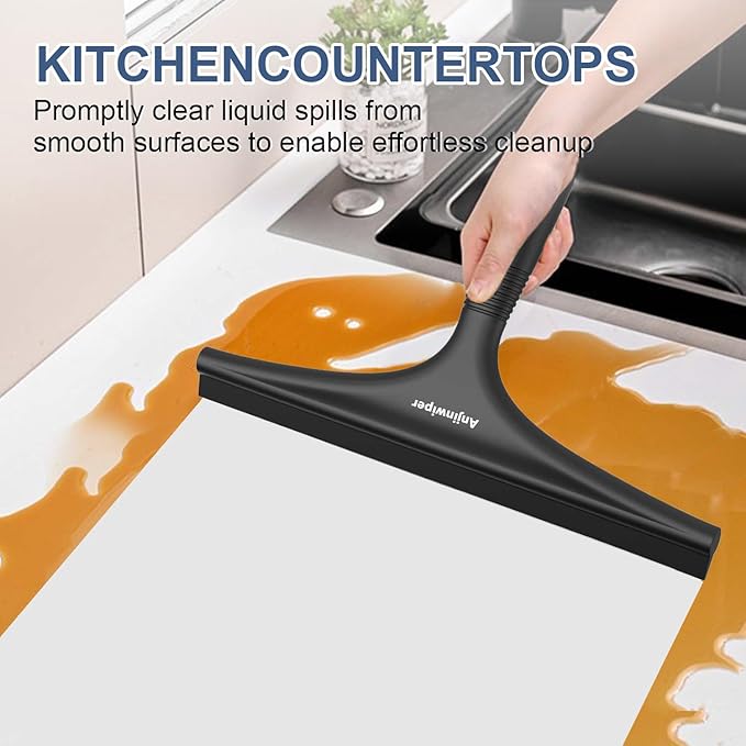 - 【Durable Silicone Design & Rust-Proof Construction】 Crafted with a 10-inch flexible silicone blade, this shower squeegee for tile shower walls and glass doors effortlessly glides to remove water streaks. The metal core is fully encased in high-grade silicone, ensuring rust resistance even in humid environments. Includes a silicone adhesive hook for wall-safe storage, matching the squeegee’s durable, waterproof build. Ideal for bathroom essentials or as a multi-surface window squeegee.