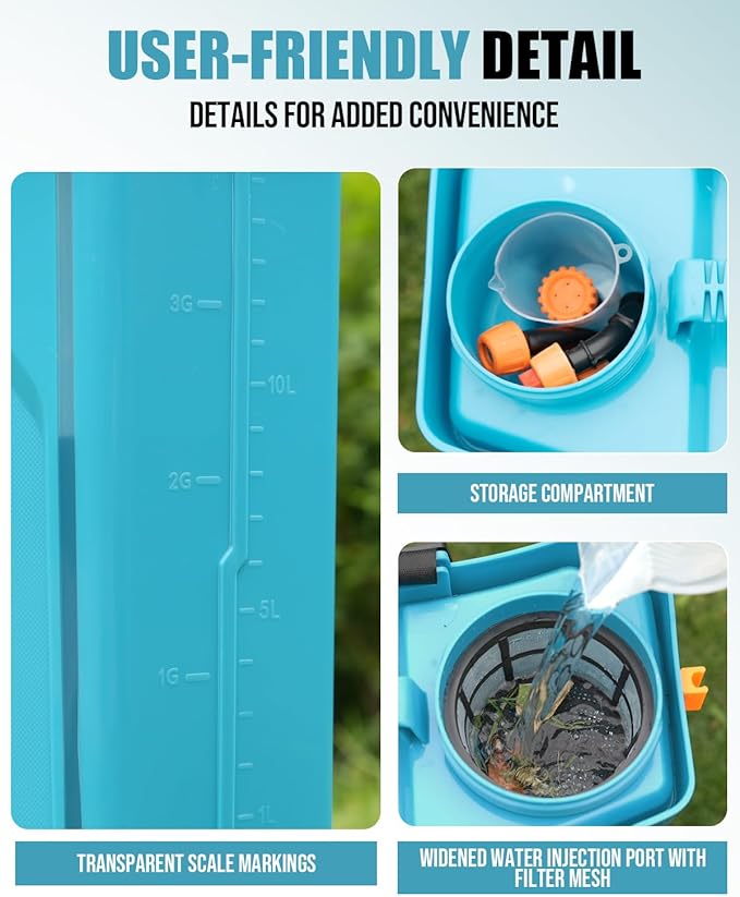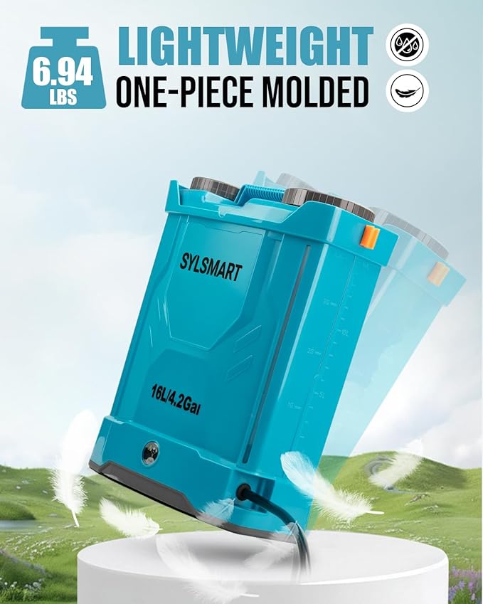 - 【Seamless Anti-Leak & Lightweight 】Constructed with a seamless, thickened 4-gallon (15L) tank and wide-mouth lid for easy filling and cleaning. Despite its rugged build, the sprayer remains lightweight (6.9 lbs) for effortless portability. Features a built-in filter and clog-resistant nozzles.