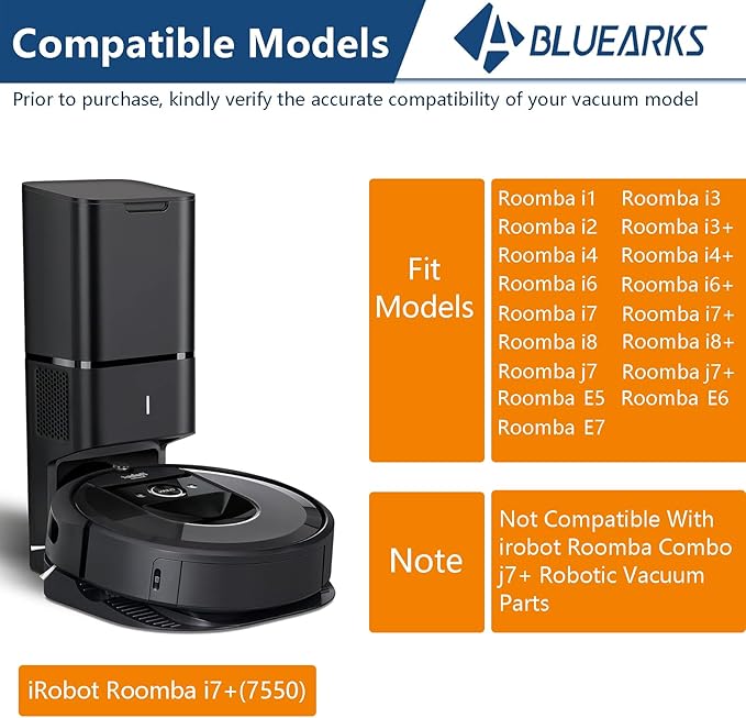 - 【FIT MODEL】The replacement parts compatible with iRobot Roomba E series E5 (E5134) E6 (E6198) E7 I series i7(7150) i7+ i7 plus(7550) i8 i8 + i1 i1+ i2 i3 i3+ i4 i4+ i5 i5+ i6 i6+ J series j8 j8+ Robotic.(Not Fit the Combo J7+)