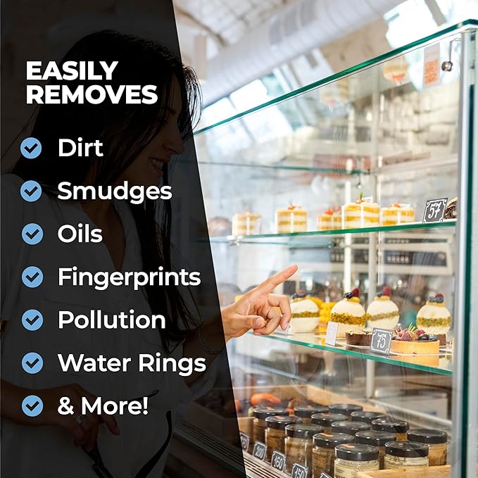 - Effectively removes fingerprints, smudges, oils, pollution, dirt, and grime from any glass surface