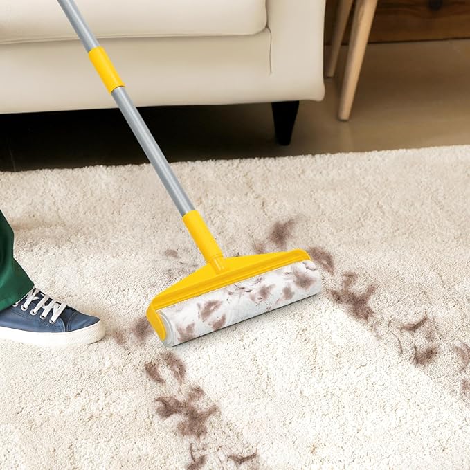 Large Lint Rollers for Pet Hair Extra Stick,9.45" Giant Lint Roller Refill 360 Sheets Total,45" Long Handle Sticky Mop,for Cleaning Floors, Carpets, Cars, Clothing and pet Hair