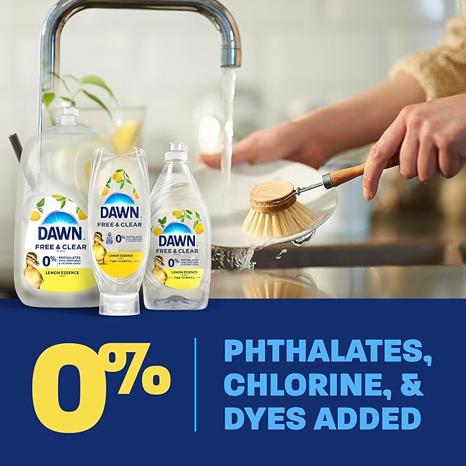 Dawn Free & Clear EZ-Squeeze Dish Soap Liquid, Dishwashing Liquid, Grease Removal, Lemon, 24.3 Fl Oz (Pack of 3)