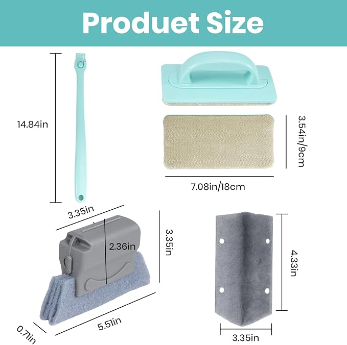 - 【3 Groove Brushes & 6 Replacement Cloths】 Includes three ergonomically shaped track brushes—colors are randomly selected (may all be the same)—plus six washable cleaning cloths. Clean tight sills, shower tracks, tile lines, and any narrow gaps—swap cloths in seconds for peak hygiene