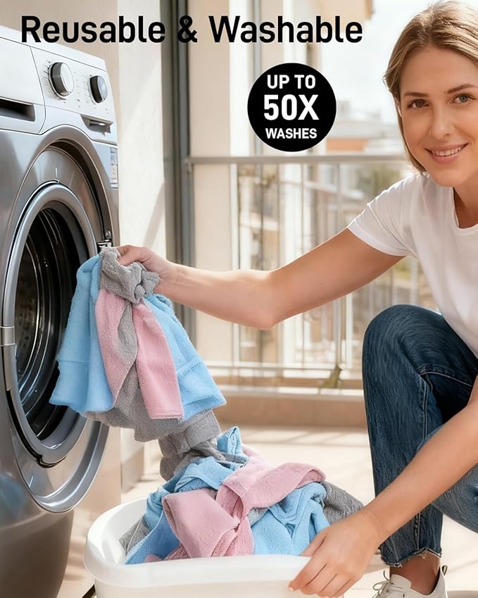 - DISPOSABLE&WASHABLE CLEANING CLOTHS: Crafted for drying, washing, and scrubbing, these towels absorb spills and moisture without extra solutions. Washable up to 50 times, they’re an eco-friendly, reusable disposable alternative to paper towels, ideal for home and auto detailing.
