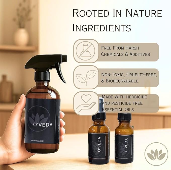 - ๐ฆ๐ฐ๐ฒ๐ป๐๐ ๐ง๐ต๐ฎ๐ ๐ฆ๐๐ฎ๐: ๐๐ฟ๐ฒ๐๐ต๐ป๐ฒ๐๐ ๐ฌ๐ผ๐โ๐น๐น ๐ก๐ผ๐๐ถ๐ฐ๐ฒ ๐ณ๐ผ๐ฟ ๐๐ผ๐๐ฟ๐: Powered by essential oils like Lavender, Lemon, Cinnamon Bark, and Clove Bud, the OโVeda cleaner delivers more than just a clean surface; it fills your home with a naturally refreshing scent that lingers for hours. The carefully balanced blend of citrus, floral, and herbal notes creates an inviting, clean-smelling space without any harsh artificial perfumes. One spray refreshes your space; long after you're done cleaning.