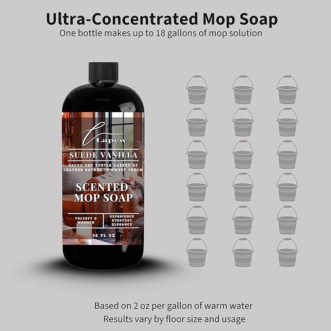 Luxury Floor Cleaner, Scented Mop Soap Concentrate | Hard Floor Cleaner for Tile, Vinyl, Laminate, LVP & Sealed Hardwood | Low-Foam, Streak-Free | 36 oz | Suede Vanilla