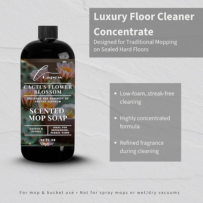 Luxury Floor Cleaner, Scented Mop Soap Concentrate | Hard Floor Cleaner for Tile, Vinyl, Laminate, LVP & Sealed Hardwood | Low-Foam, Streak-Free | 36 oz | Cactus Flower Blossom