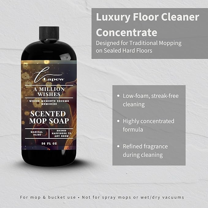 Luxury Floor Cleaner, Scented Mop Soap Concentrate | Hard Floor Cleaner for Tile, Vinyl, Laminate, LVP & Sealed Hardwood | Low-Foam, Streak-Free | 36 oz | A Million Wishes
