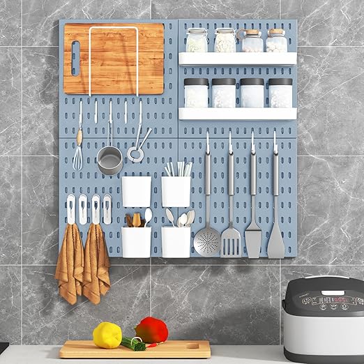 - Customizable Setup: This peg board set includes 4 panels (12.8"x12.8") and 20 accessories, allowing you to customize the layout in a variety of ways to suit your needs. Whether you need storage in the office, kitchen, or garage, you can adjust the configuration for maximum efficiency