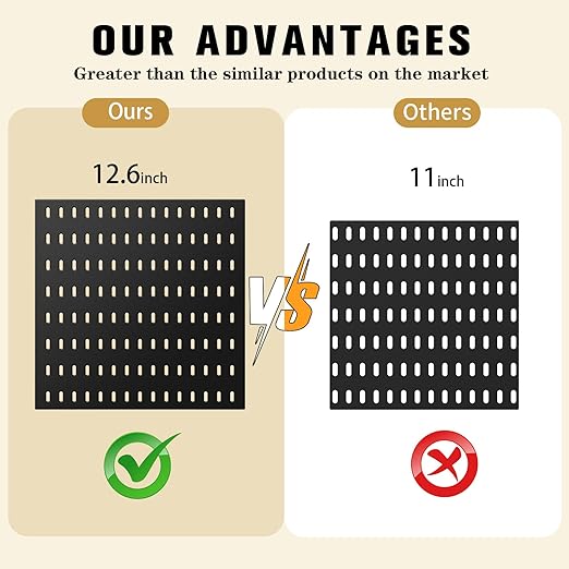 - Customizable Setup: This peg board set includes 4 panels (12.8"x12.8") and 20 accessories, allowing you to customize the layout in a variety of ways to suit your needs. Whether you need storage in the office, kitchen, or garage, you can adjust the configuration for maximum efficiency