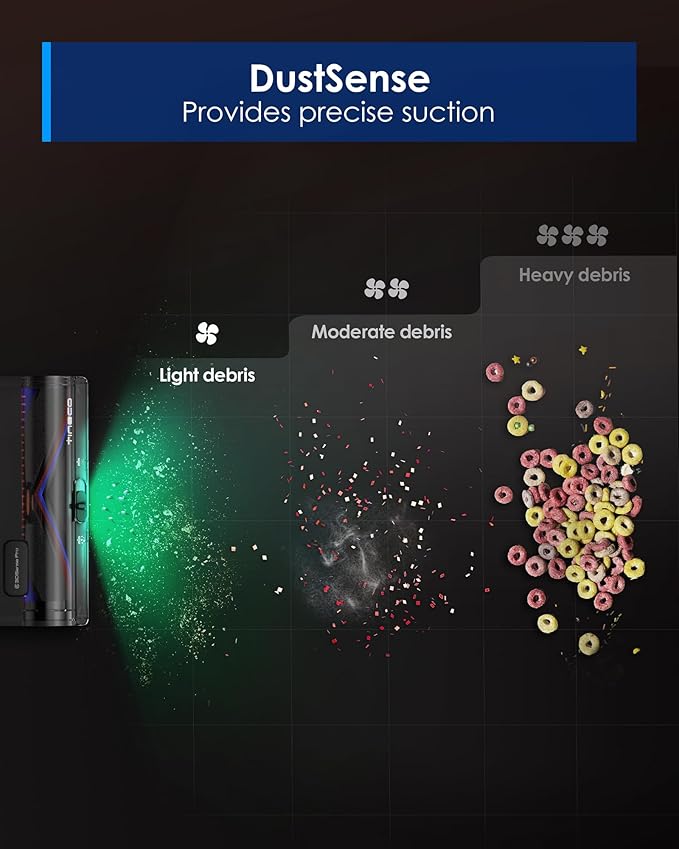- 3DSense Pro Cleaning System: Powered by next-generation 3DSense Pro technology, this system delivers precise, targeted suction while detecting dust in real time. Advanced sensors instantly analyze the amount of debris on the surface, automatically adjusting suction power to match the cleaning needs